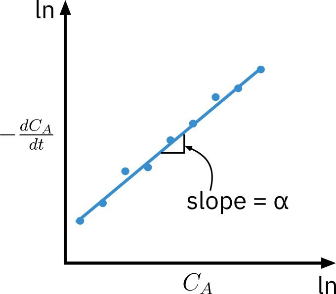 Slope of plot of ln[−dCA/dt] vs.lnCA is the reaction order