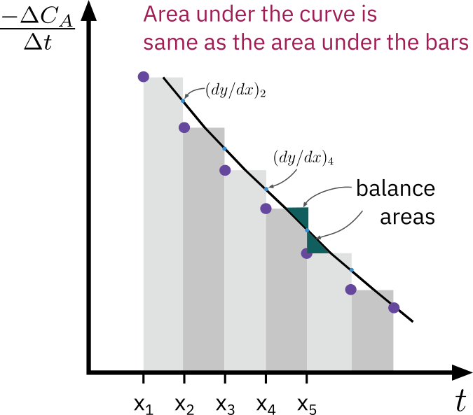 Specific reaction rate can be determined using a specific point p: k=(CA)pα(−dCA/dt)p