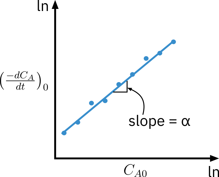 Initial rate: −rA0=(dt−dCA)0=kCA0α