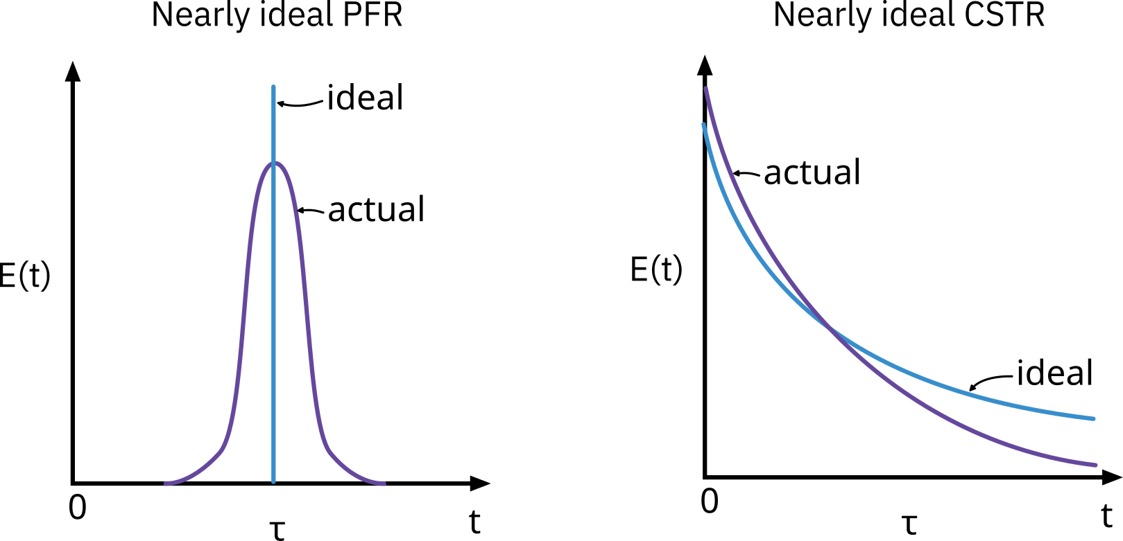 Ideal batch reactor: Atoms spend exactly the same time in these two reactors.